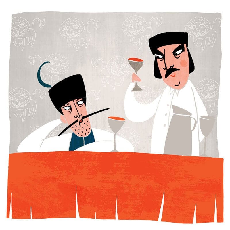 – Csakis éntőlem – igazította helyre Panzasándor. – Én fizetek. Én pediglen azt mondom, igyék kend, ha szomjas.