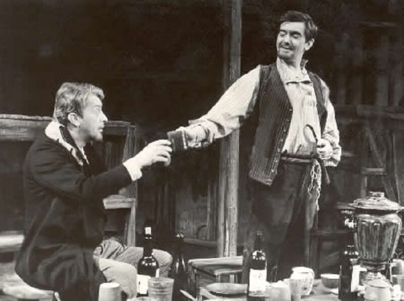Biztos? Volt-e olyan előadás, ahol nem kellett „szólóznia”, ahol szerepe azonos súlyú volt a többiekével? Az éjjeli menedékhely Szatyinja. Ott is fölébeszélt a helyzeteknek, benne volt ugyan a szituációkban, mégis kívül maradt. Szatyin híres monológját az emberről hitelesen mondta el – mint egy áriát. Zeneileg is megkomponálta. Benne volt ugyan a forgatagban, de mindig kicsit kívül maradt. Ám amikor különböző jelenet-töredékekben felvillant valami Szatyin múltjáról, az élt! Különállóságában is élt! Azt hiszem, mert az előadás „egyben” volt, mint egy sokszólamú zenemű. Az egész szabta meg a megszólalások ritmusát, dinamikáját, ritmusváltásait, pianóit és fortéit. Magányos, de szép és őszinte alkotás volt Gábor Szatyinja. „Múlnak nappalok és éjszakák, / Fényt a szemem sose lát” – énekelték együtt a próbán a színészek, a „menedékhely lakói”. „Kinek van ilyen szép, mély hangja?” – kérdezte valaki, mert valóban kizengett a kórusból. „Nekem!” – mondta Gábor, és nevetett.