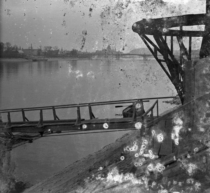 Újlaki (Óbuda) rakpart, úszó csónakház lejárója a Császárfürdőnél.
